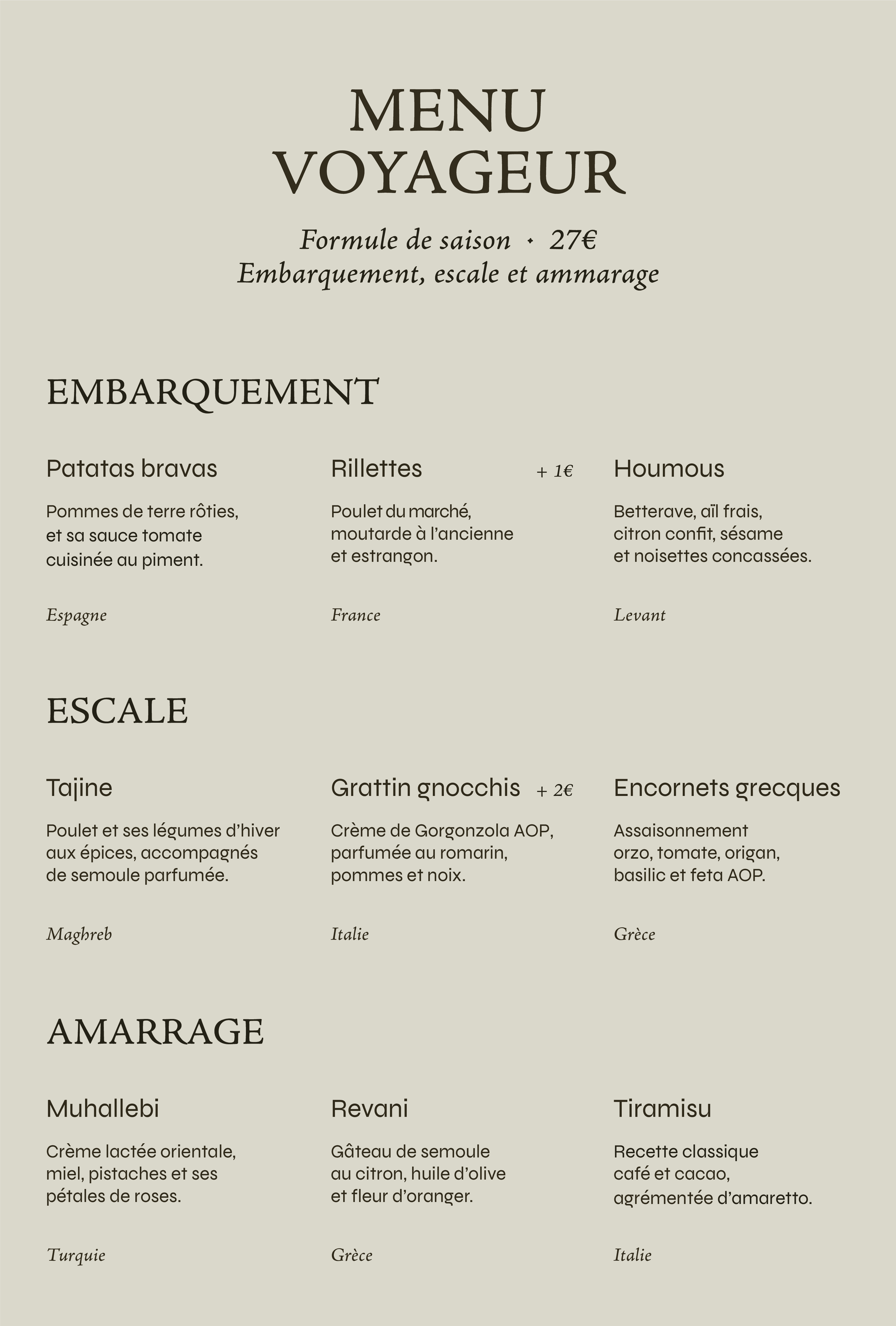 MENU VOYAGEUR